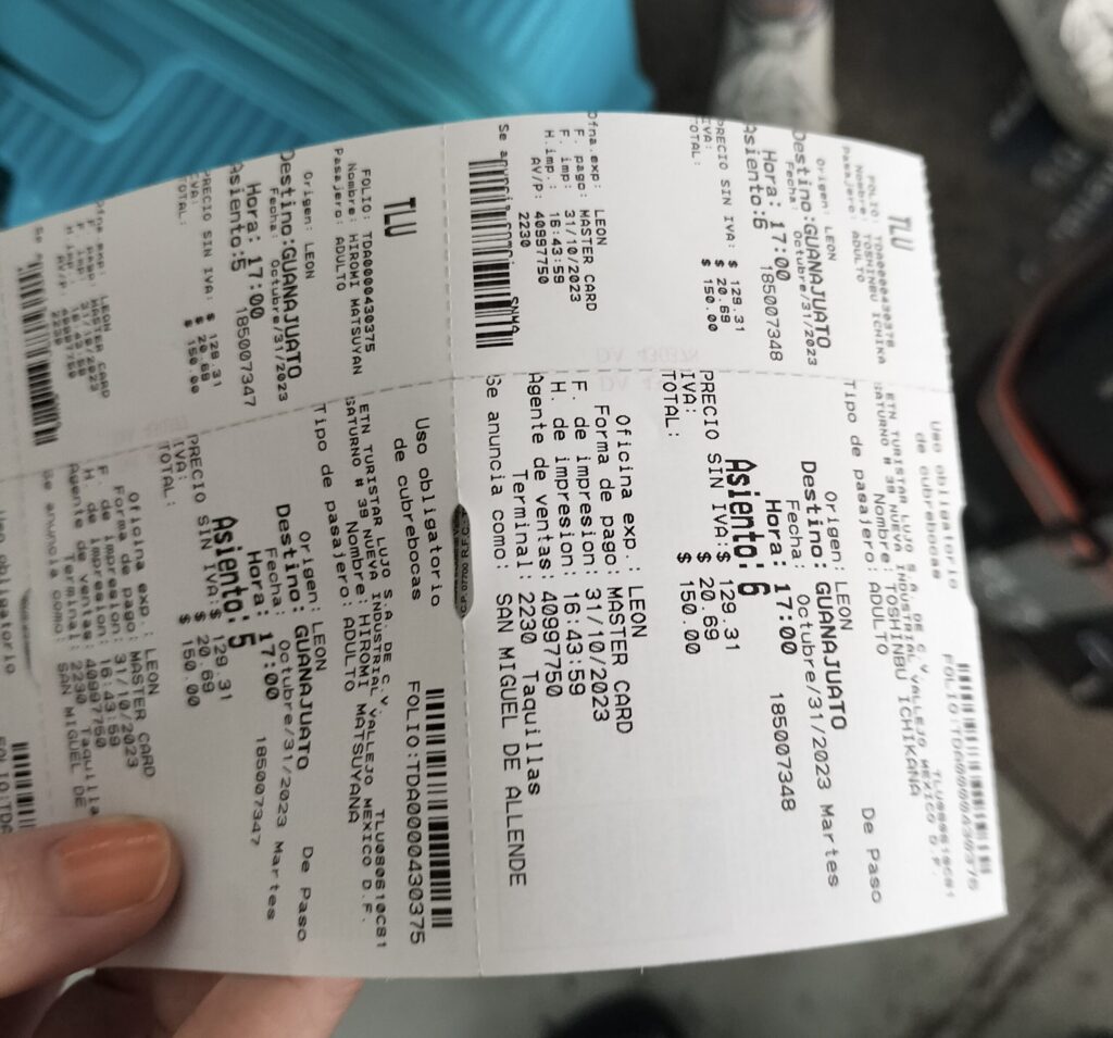 いよいよ、バスでグアナファトに移動します。事前にインターネットでチケットを予約しました。