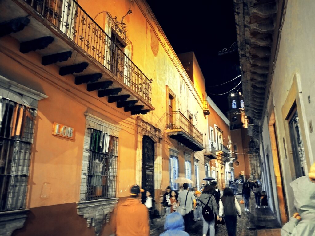 19:00頃に無事グアナファトに着きました。。。大雨だったのでUberタクシーを予約、ホテルの近くで降り、ここからは石畳の急な登り坂を歩きます。